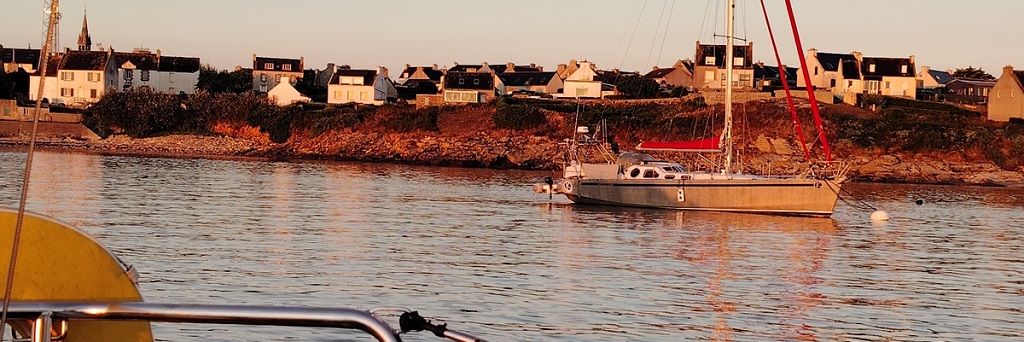 Curioso il nostro ormeggio in rada a Belle-Île (isola bella di nome e di fatto),